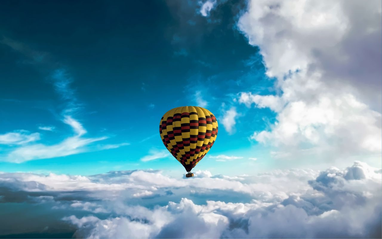 Download 1280x800 air balloon, sky, clouds, flight, height, motley wallpaper, background widescreen 16:10