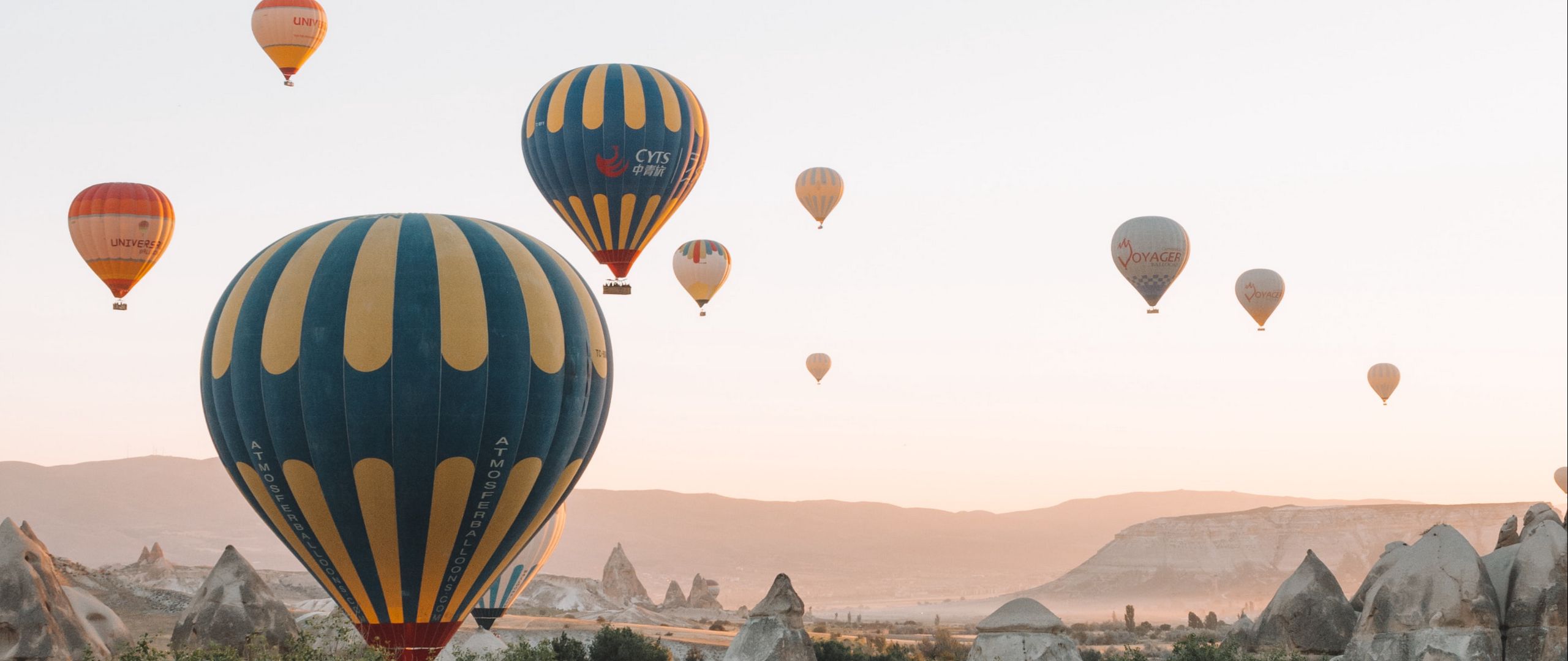 Download 2560x1080 air balloons, sky, fly, mountains, rocks wallpaper, background dual wide 1080p