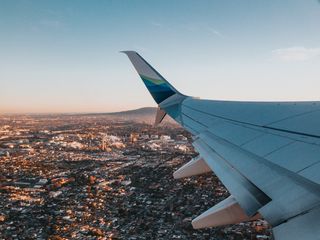 Download 320x240 airplane, wing, city, aerial view, overview wallpaper, background nokia e72, e71, asha, alcatel onetouch