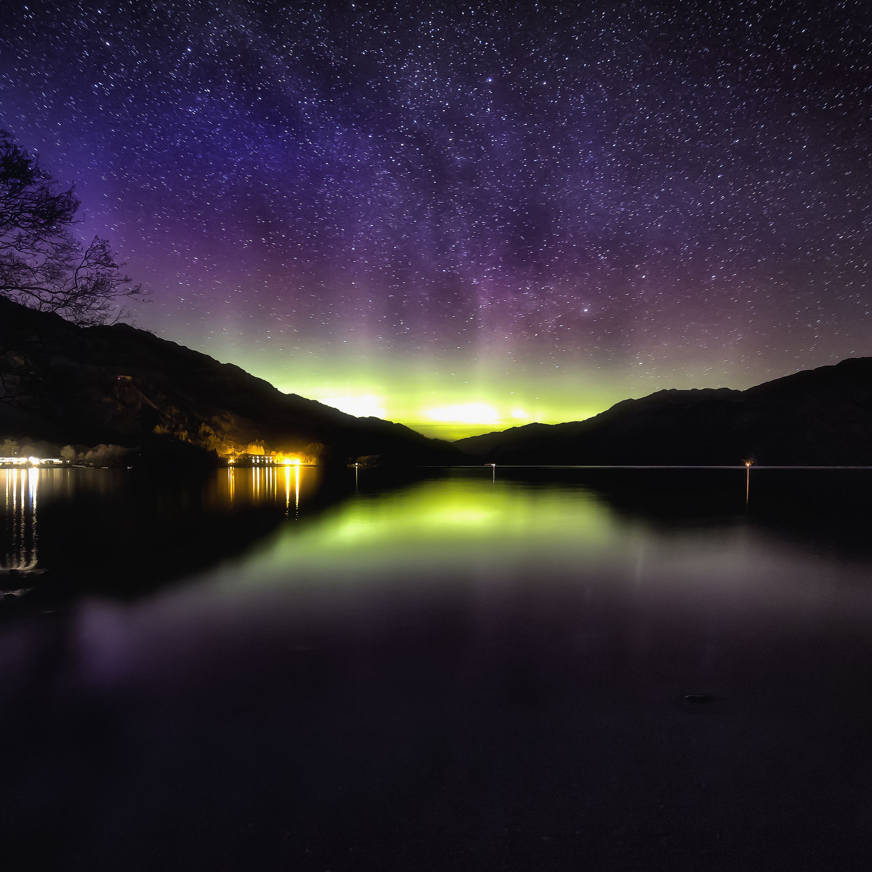 Download 2780x2780 aurora, starry sky, night, loch lomond, scotland wallpaper, background ipad air, ipad air 2, ipad 3, ipad 4, ipad mini 2, ipad mini 3, ipad mini 4, ipad pro 9.7" for parallax
