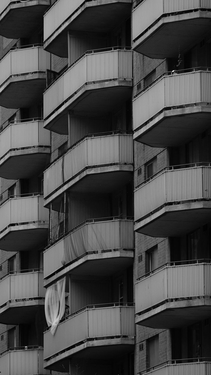 Download 800x1420 balconies, building, house, black and white wallpaper, background iphone se/5s/5c/5 for parallax