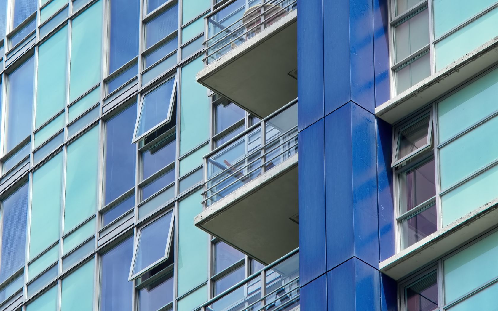 Download 1680x1050 balconies, facade, windows, glass, blue wallpaper, background widescreen 16:10
