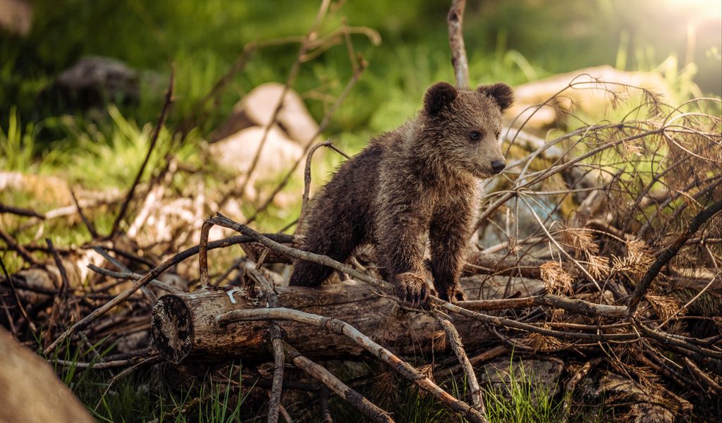 Download 1024x600 bear cub, cub, branches, walk wallpaper, background netbook, tablet