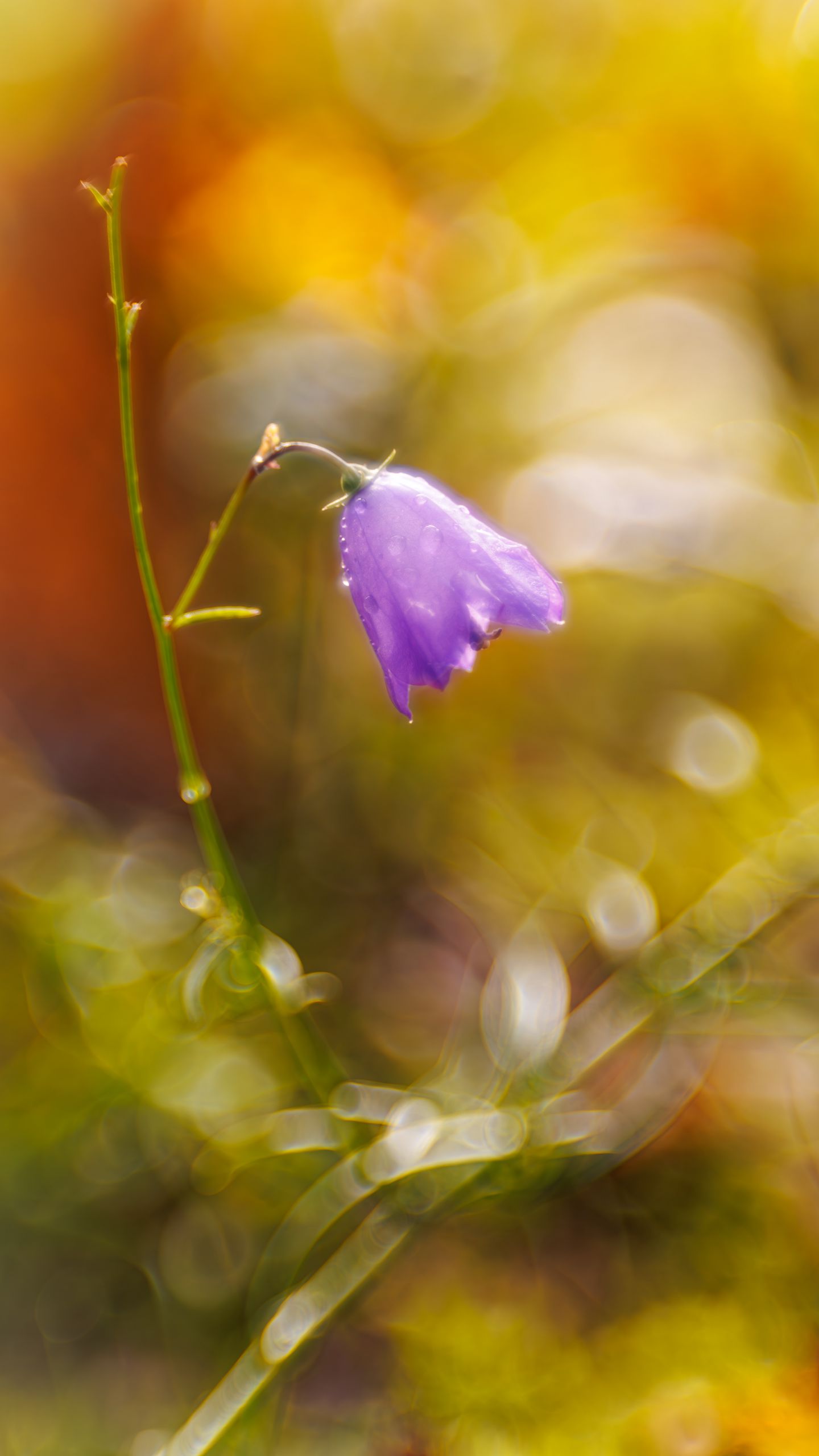 Download 1440x2560 bell, drops, flower, purple, bokeh wallpaper, background qhd samsung galaxy s6, s7, edge, note, lg g4
