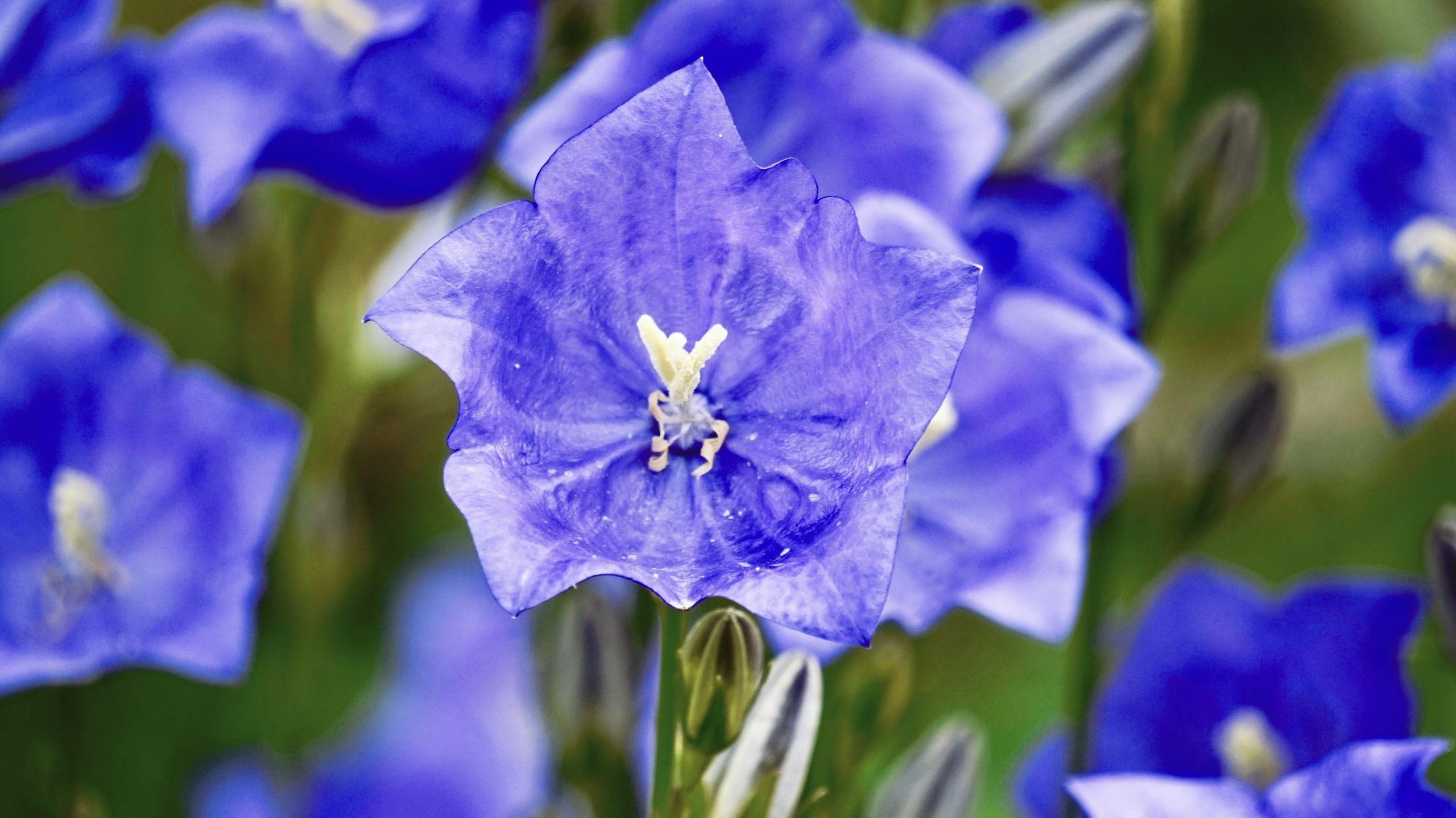 Download 2560x1440 bell, flower, petals, blue wallpaper, background widescreen 16:9