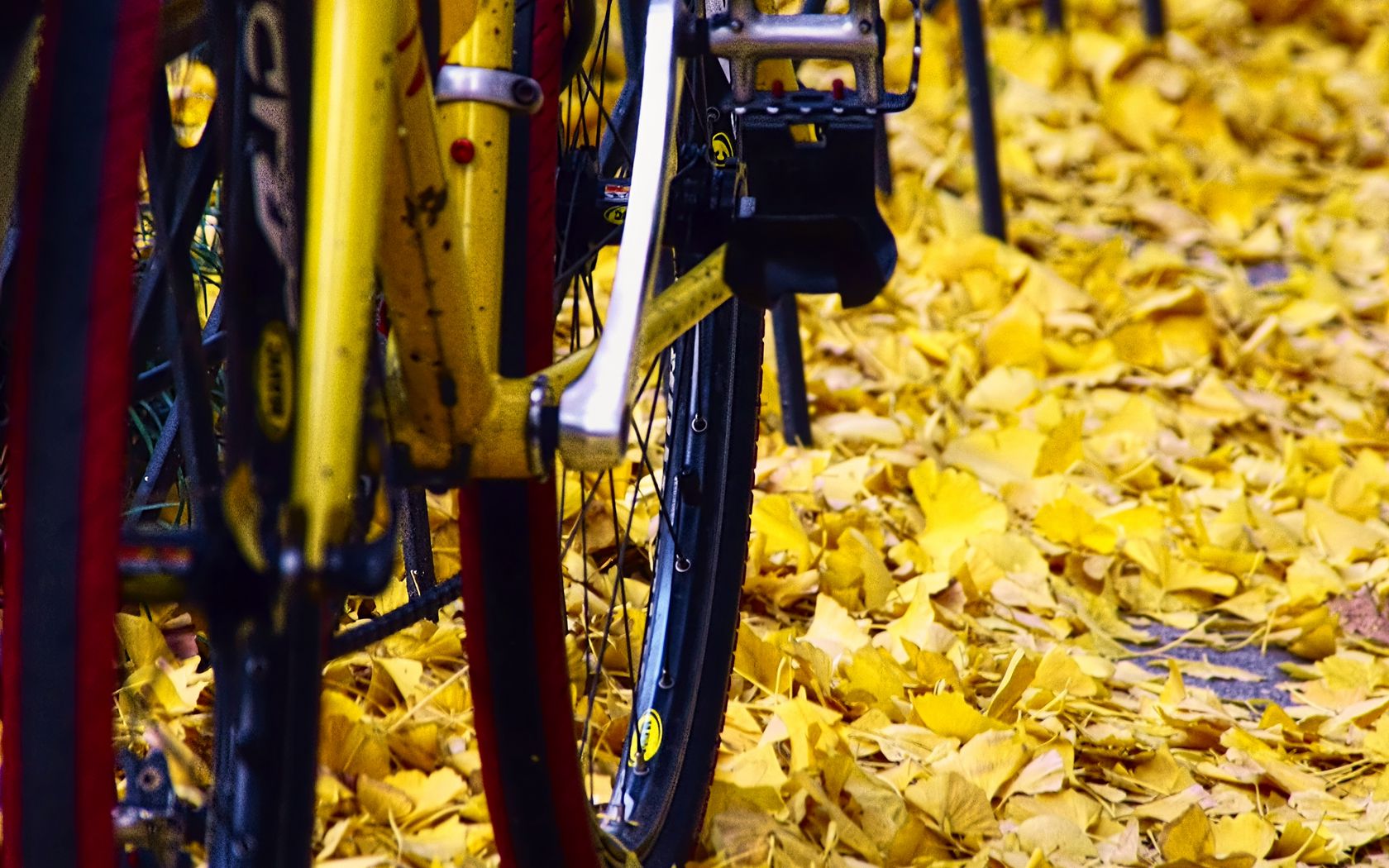 Download 1680x1050 bicycle, fallen leaves, autumn wallpaper, background widescreen 16:10
