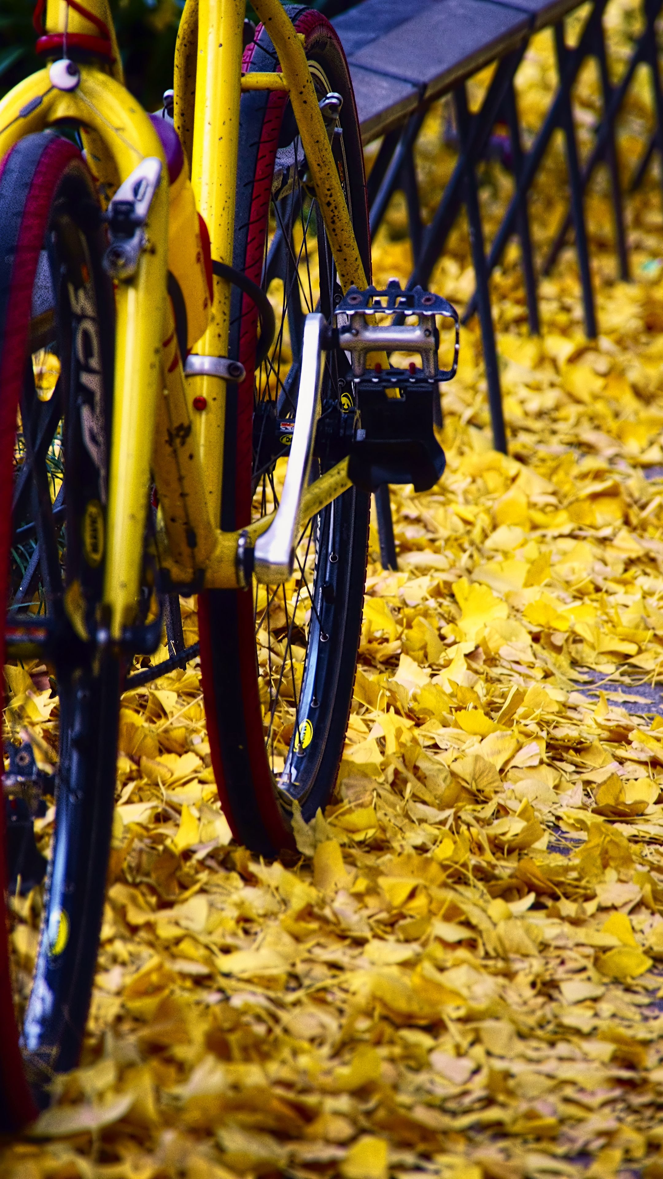 Download 2160x3840 bicycle, fallen leaves, autumn wallpaper, background samsung galaxy s4, s5, note, sony xperia z, z1, z2, z3, htc one, lenovo vibe