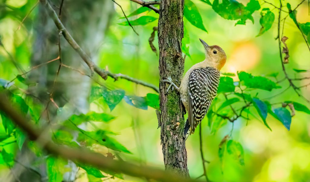 Download 1024x600 bird, tree, bark, wildlife, leaves wallpaper, background netbook, tablet