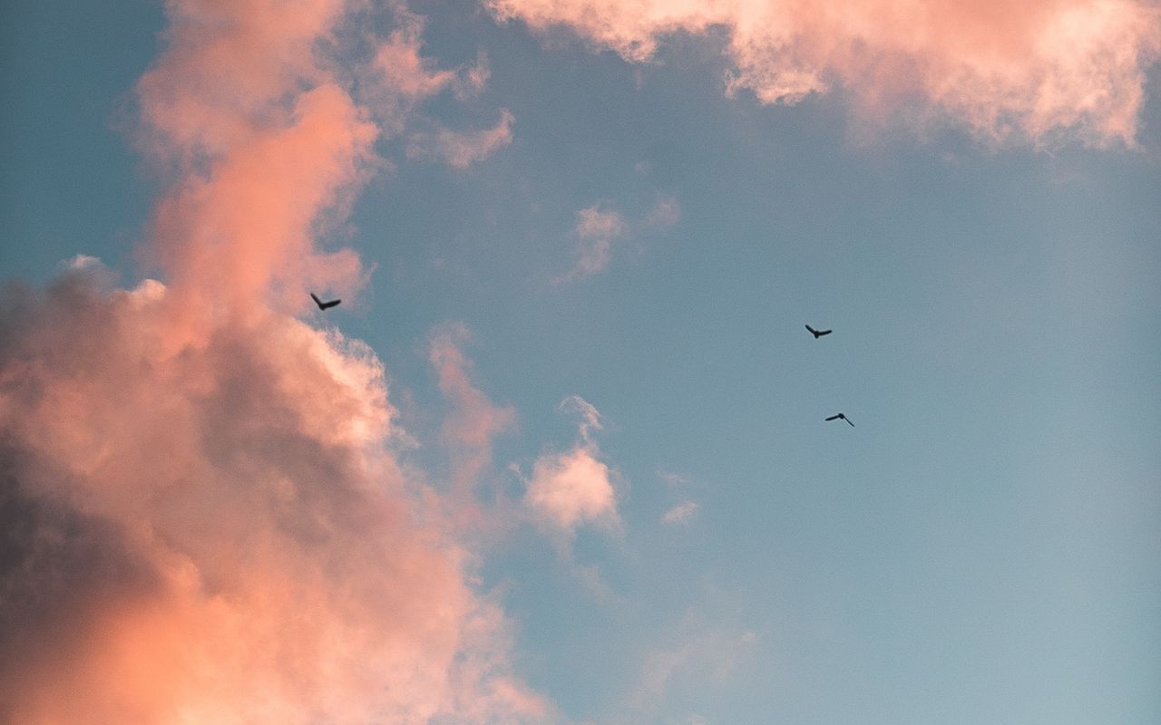 Download 1280x800 birds, clouds, sky, pink wallpaper, background widescreen 16:10