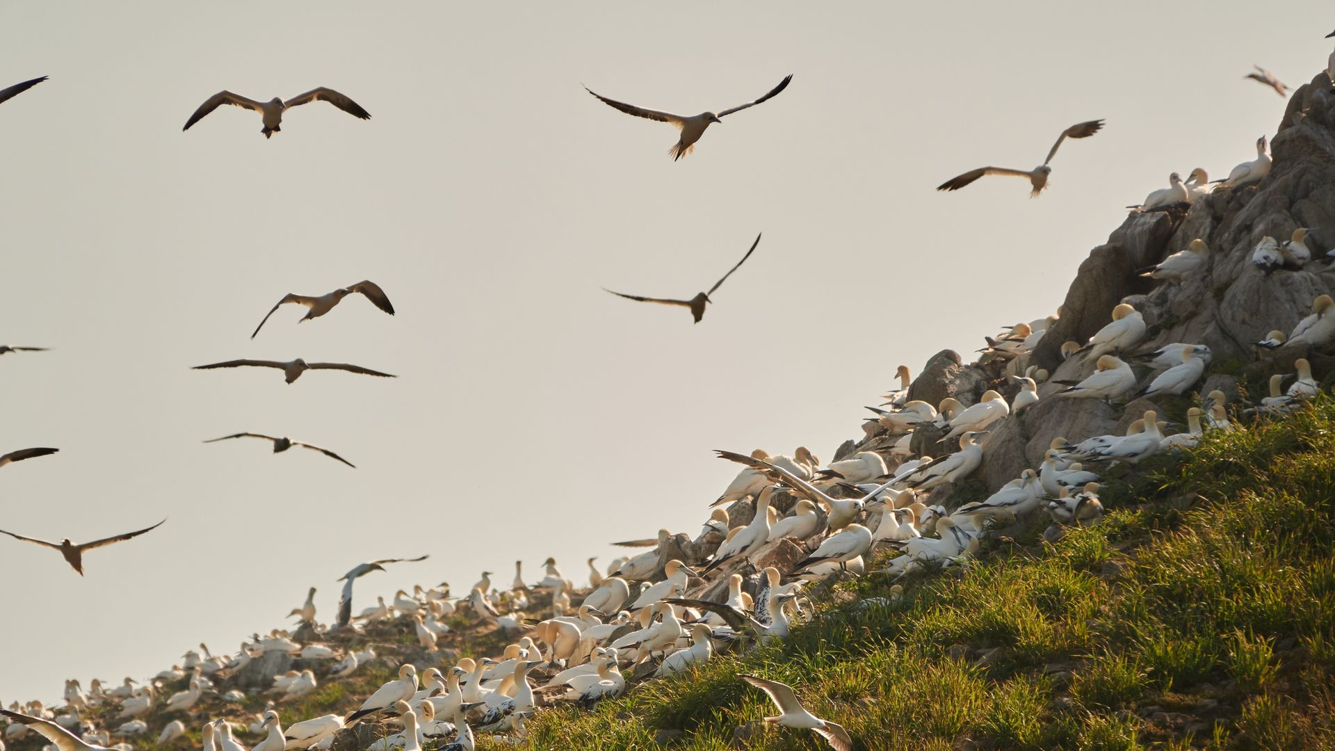 Download 1920x1080 birds, flight, slope, grass wallpaper, background full hd, hdtv, fhd, 1080p