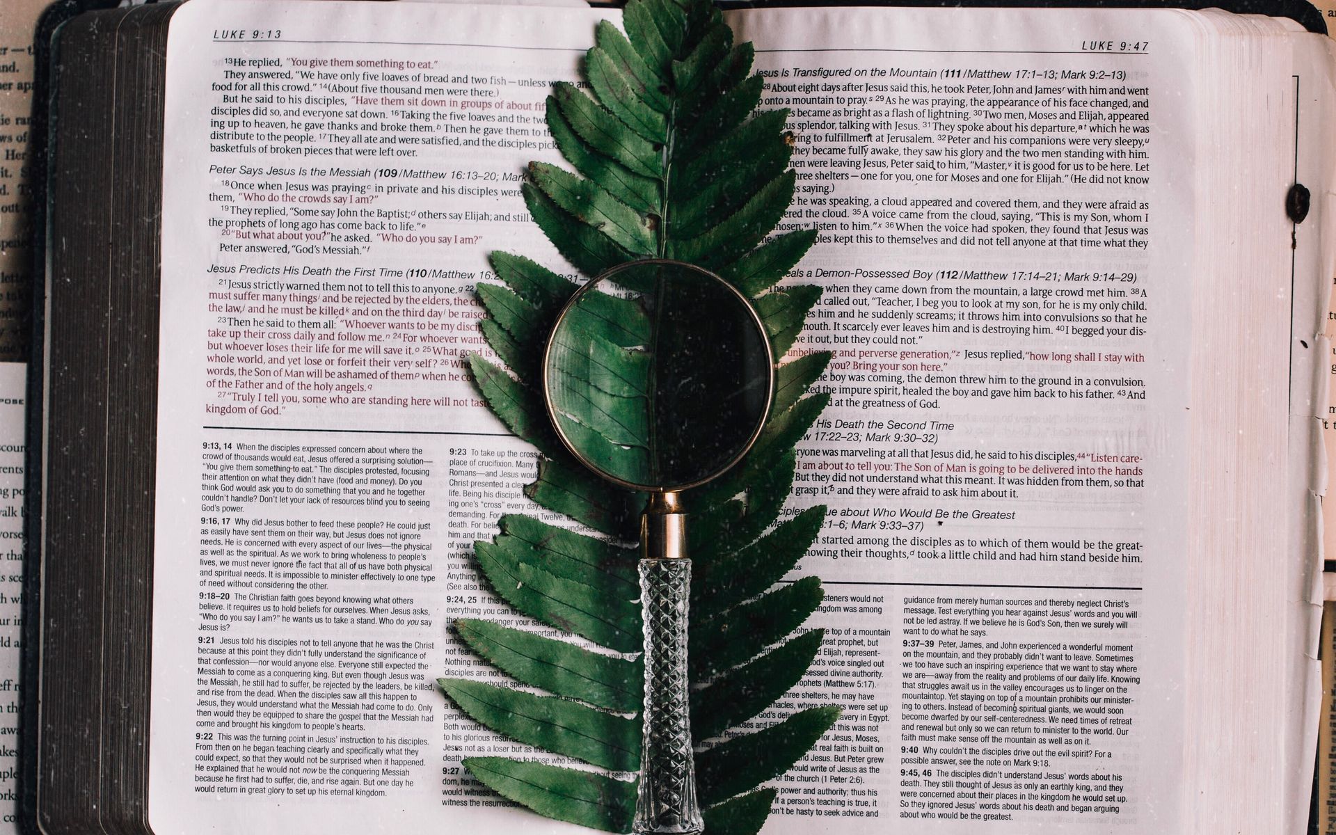 Download 1920x1200 book, fern, magnifier, branch, leaf wallpaper, background widescreen 16:10