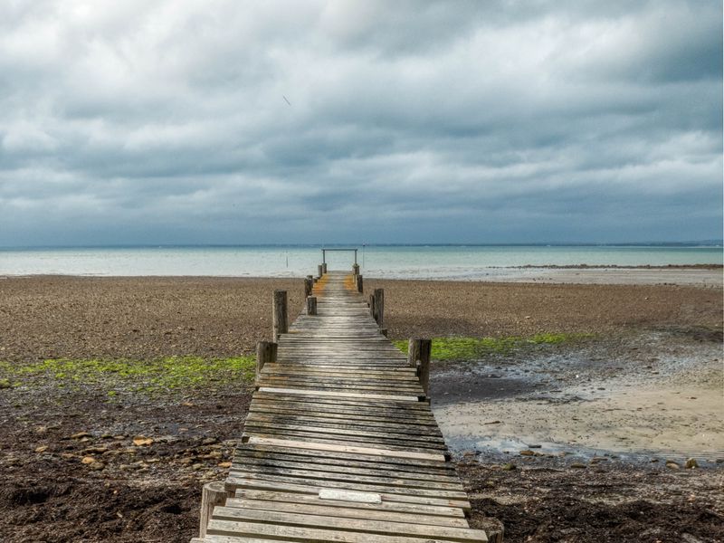 Download 800x600 bridge, pier, beach, sea, horizon, clouds, sky, landscape wallpaper, background pocket pc, pda