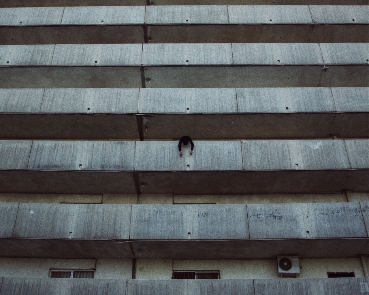Download 1280x1024 building, balconies, man, architecture, high-rise wallpaper, background standard 5:4