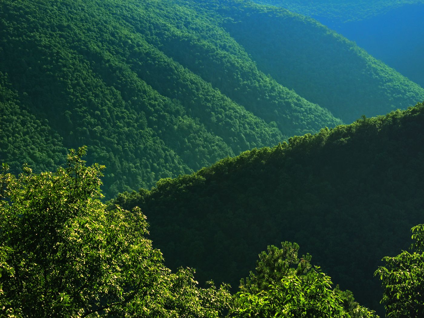 Download 1400x1050 bushes, hills, trees, slope wallpaper, background standard 4:3