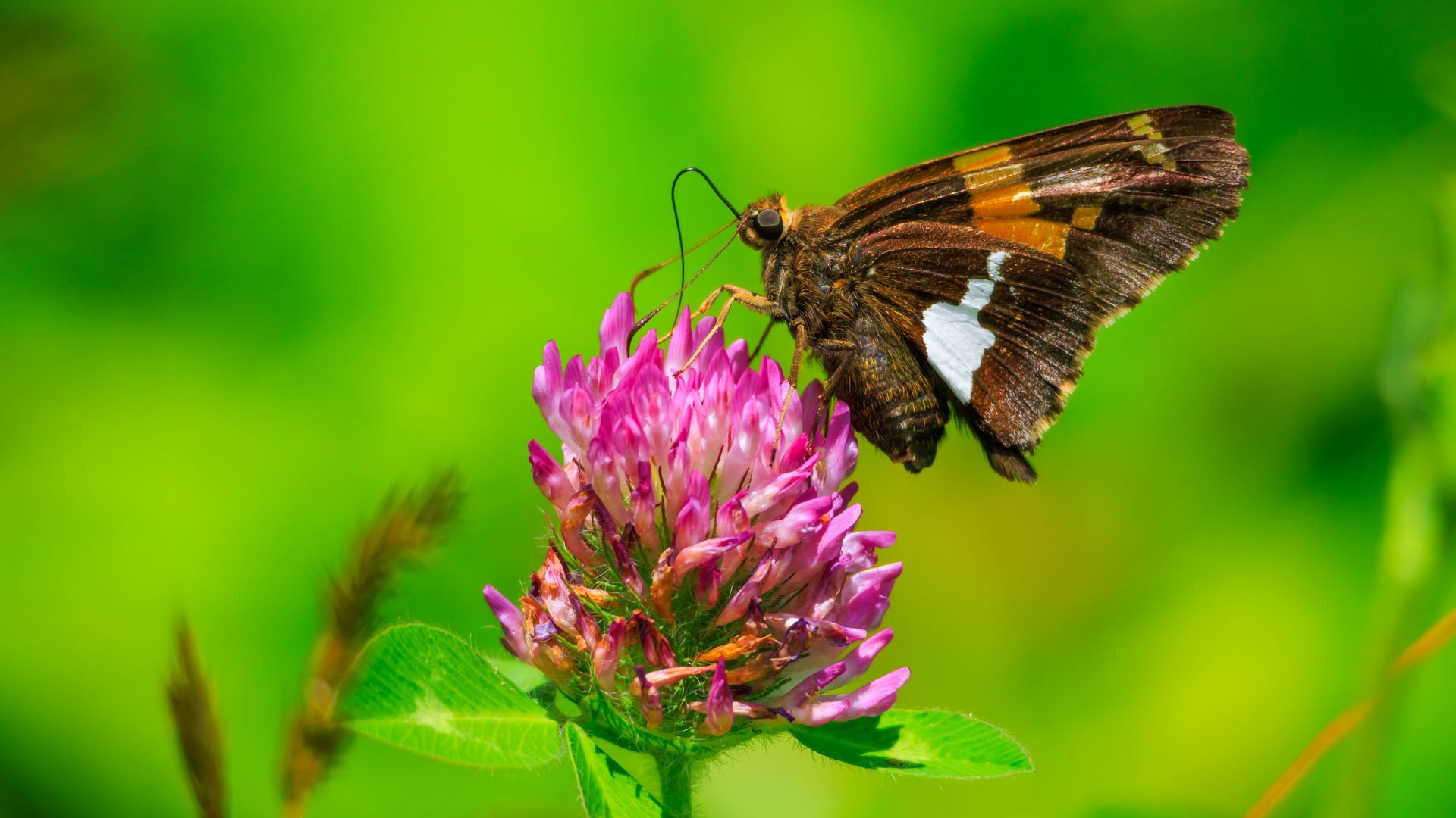 Download 1920x1080 butterfly, clover, flower, plant, macro wallpaper, background full hd, hdtv, fhd, 1080p
