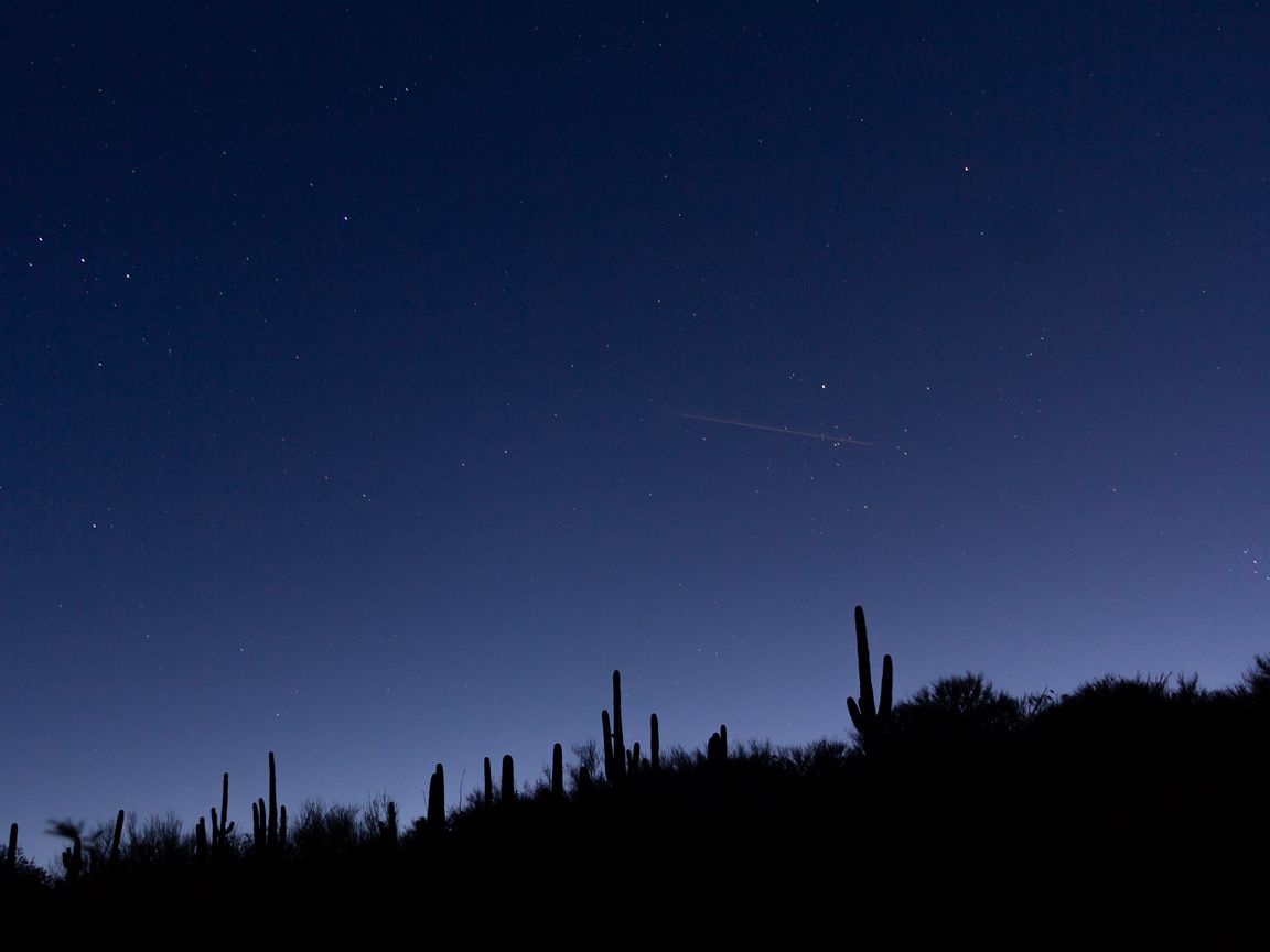 Download 1152x864 cacti, slope, night, silhouettes, starry sky wallpaper, background standard 4:3