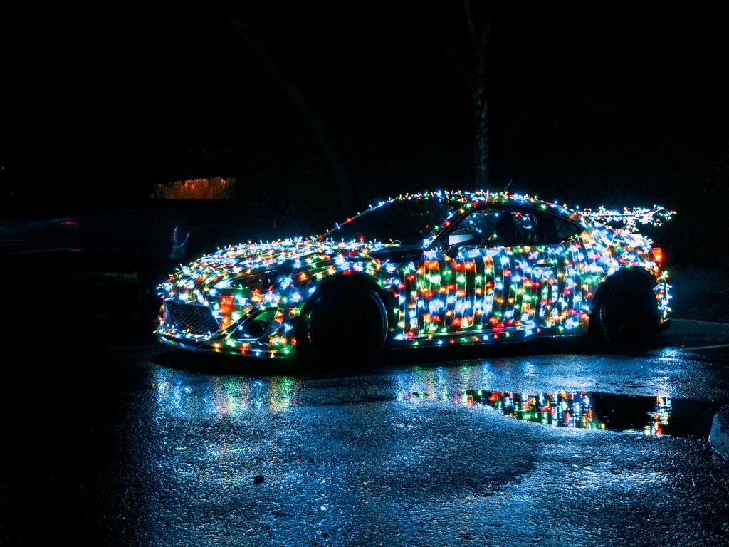 Download 1024x768 car, garlands, lights, night wallpaper, background standard 4:3