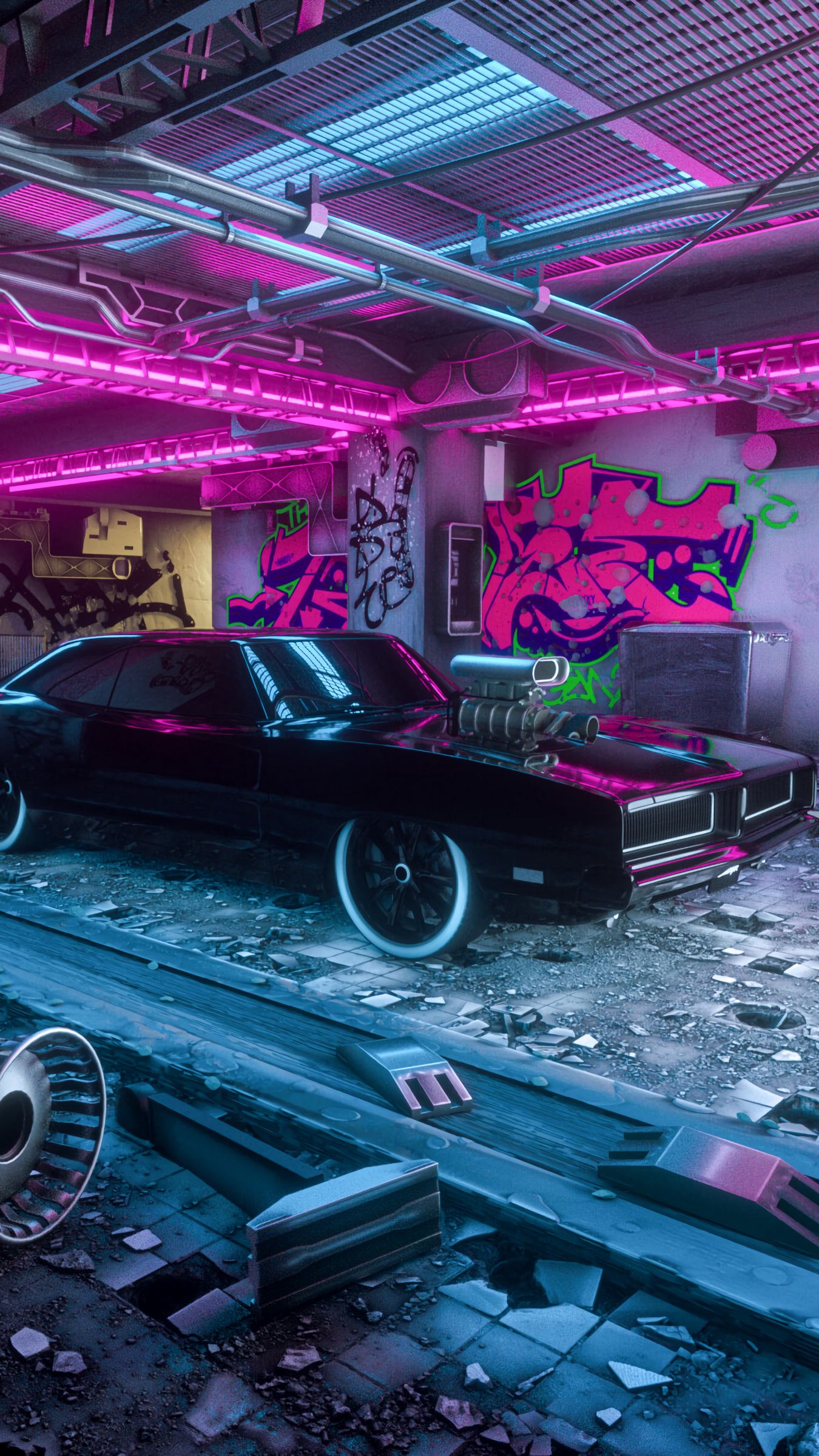 Download 1350x2400 car, neon, graffiti, art wallpaper, background iphone 8+/7+/6s+/6+ for parallax