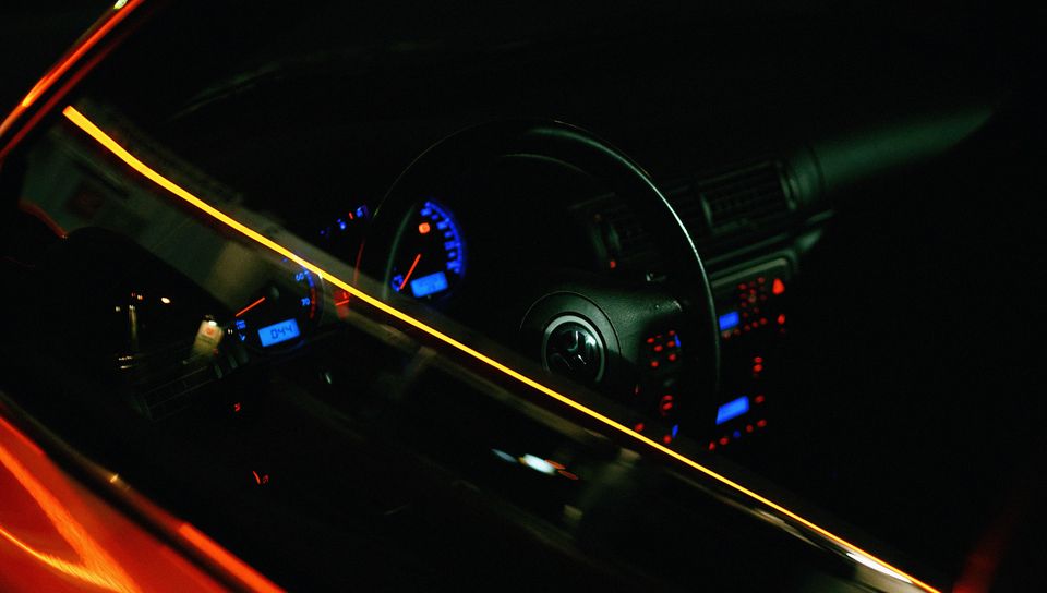 Download 960x544 car, salon, steering wheel, panel, dark wallpaper, background playstation ps vita