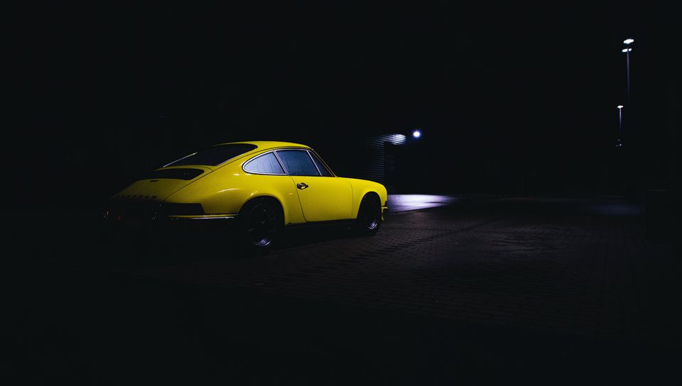 Download 960x544 car, yellow, retro, dark, night wallpaper, background playstation ps vita