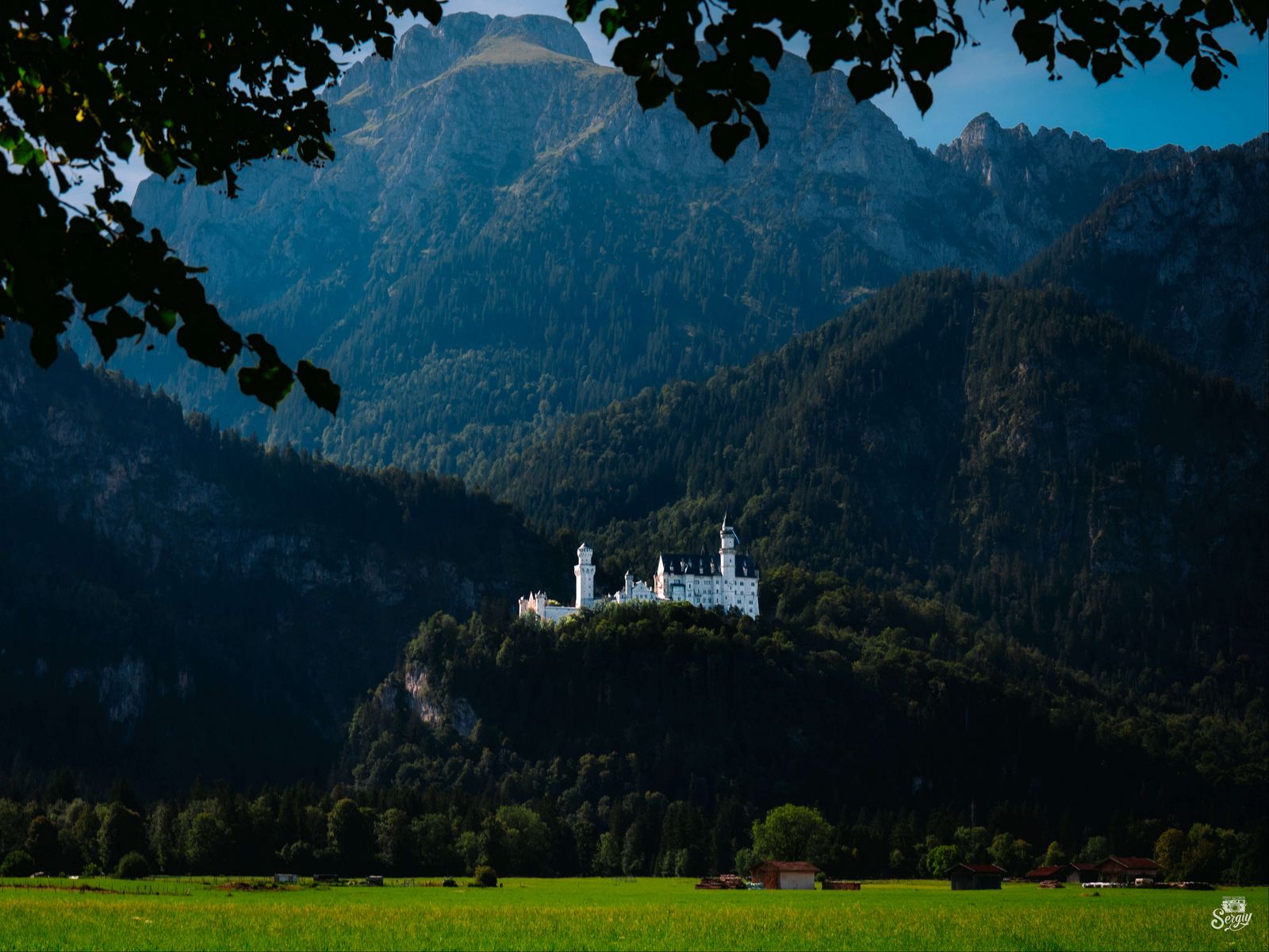 Download 1600x1200 castle, trees, forest, mountains, landscape wallpaper, background standard 4:3