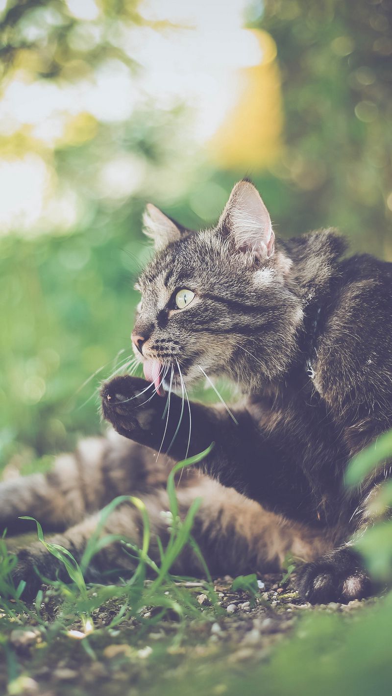 Download 800x1420 cat, paw, protruding tongue, funny wallpaper, background iphone se/5s/5c/5 for parallax