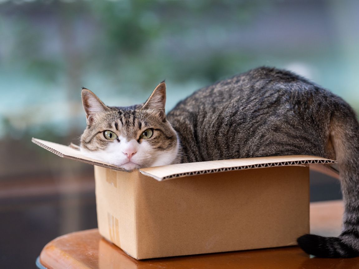 Download 1152x864 cat, pet, box, cool wallpaper, background standard 4:3