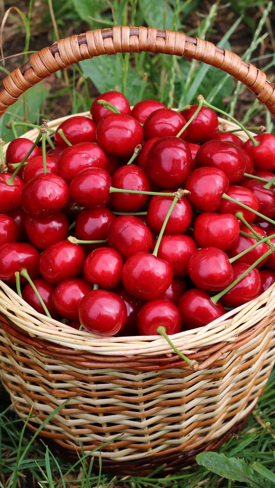 Download 540x960 cherries, berries, basket, harvest, red wallpaper, background samsung galaxy s4 mini, microsoft lumia 535, philips xenium, lg l90, htc sensation