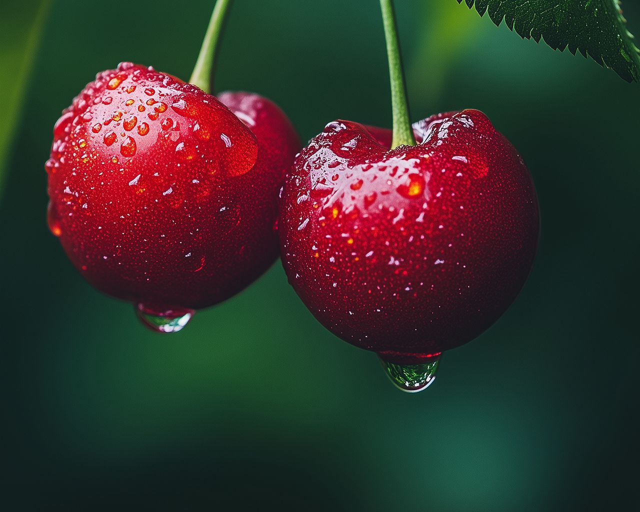 Download 1280x1024 cherries, fruits, drops, dew, macro, red wallpaper, background standard 5:4