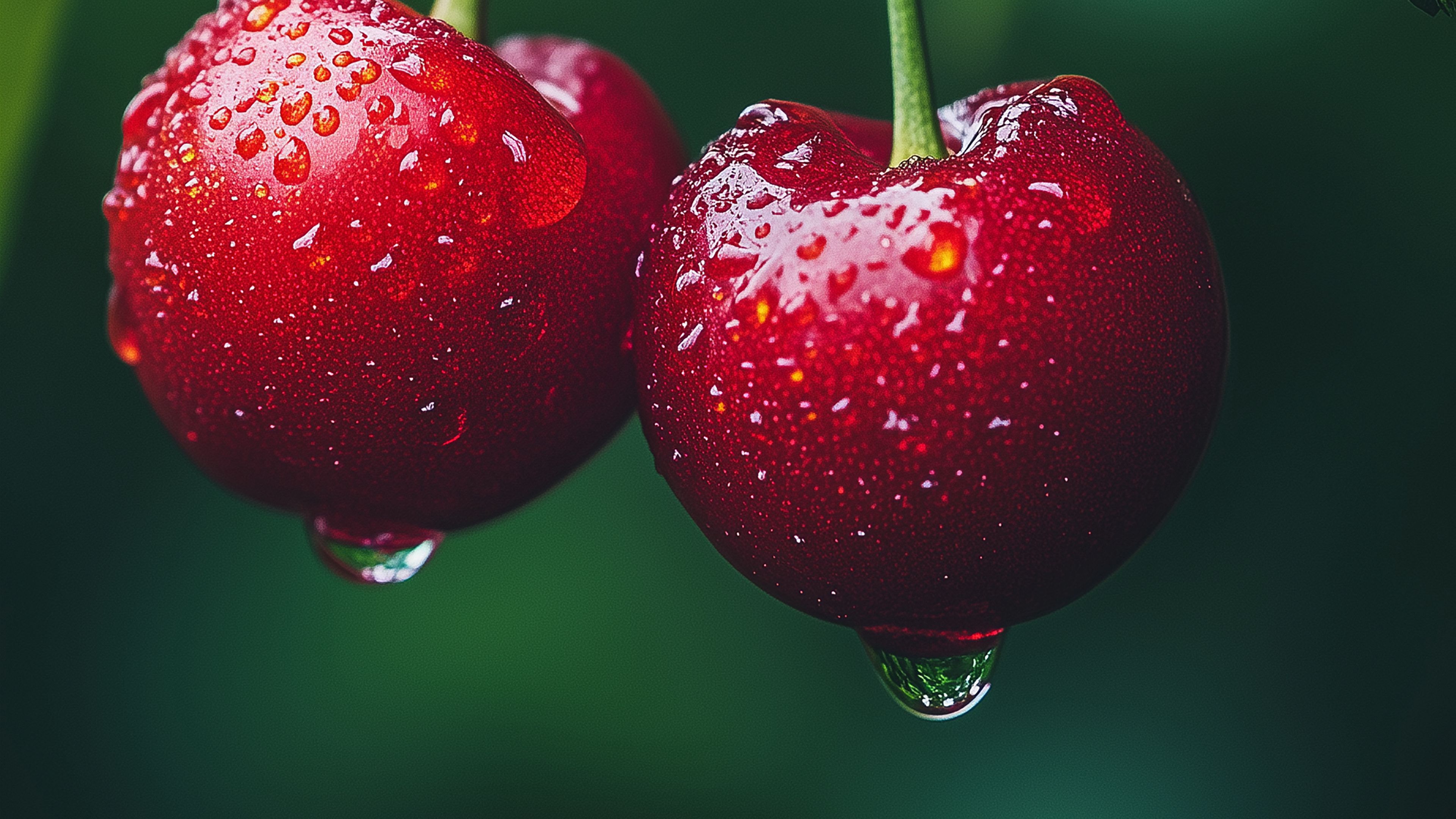 Download 3840x2160 cherries, fruits, drops, dew, macro, red wallpaper, background 4k uhd 16:9