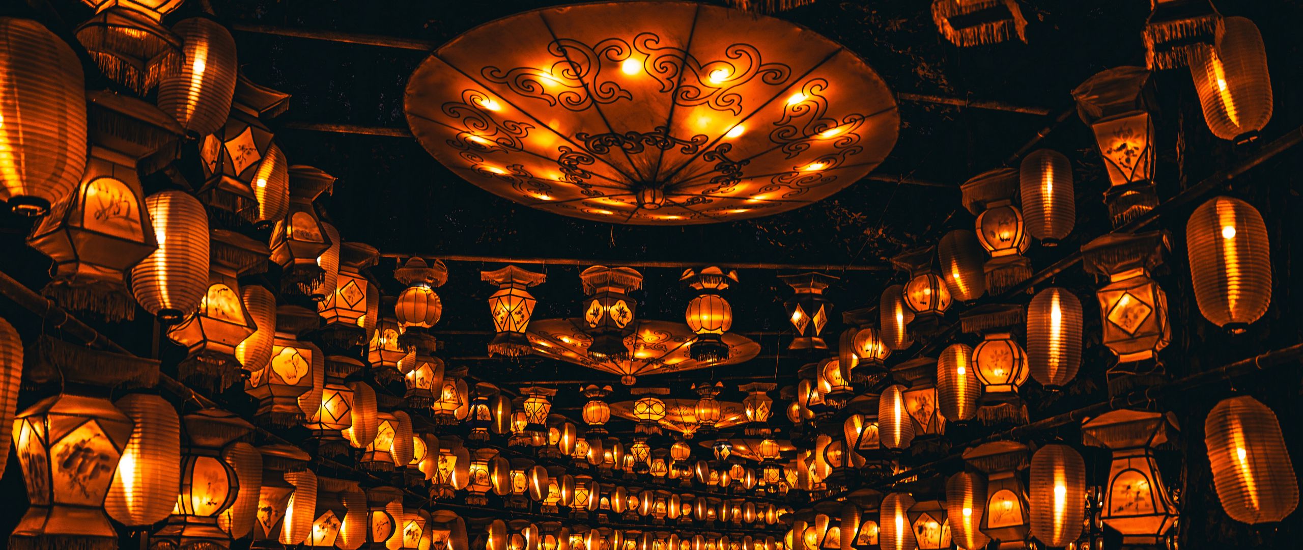 Download 2560x1080 chinese lanterns, lanterns, light, dark wallpaper, background dual wide 1080p