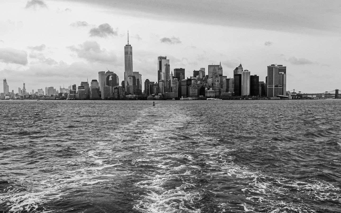 Download 1440x900 city, river, new york, manhattan, black and white wallpaper, background widescreen 16:10