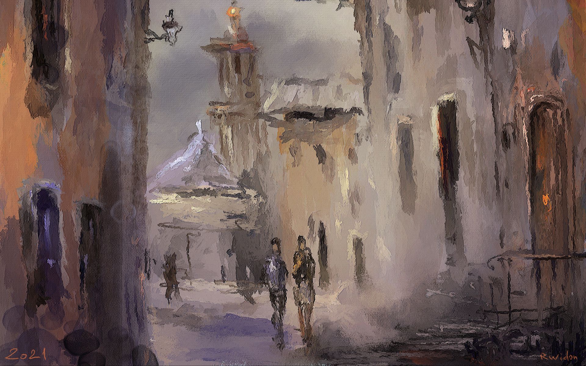 Download 1920x1200 city, street, buildings, lights, people, art wallpaper, background widescreen 16:10