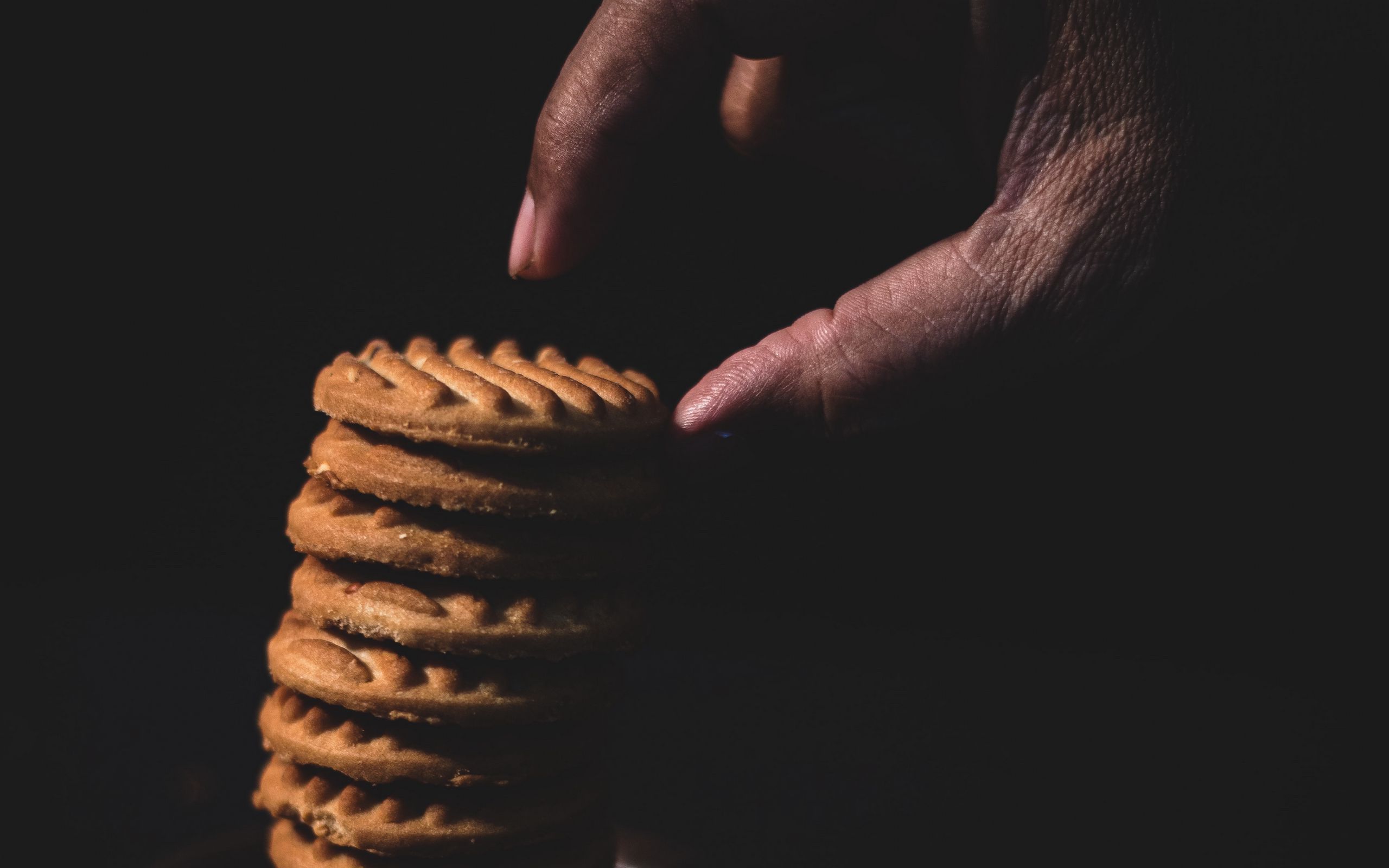 Download 2560x1600 cookies, stack, dessert, hand, dark wallpaper, background widescreen 16:10