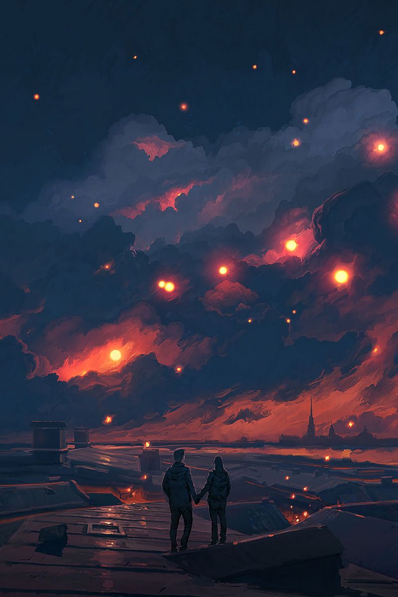Download 800x1200 couple, night, art, clouds, romance, love wallpaper, background iphone 4s/4 for parallax