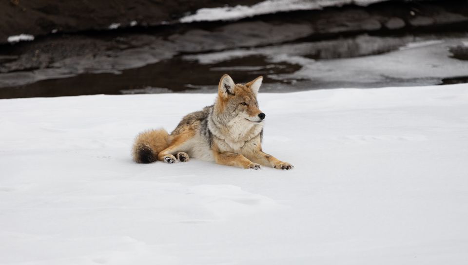 Download 960x544 coyote, predator, animal, snow, wildlife wallpaper, background playstation ps vita