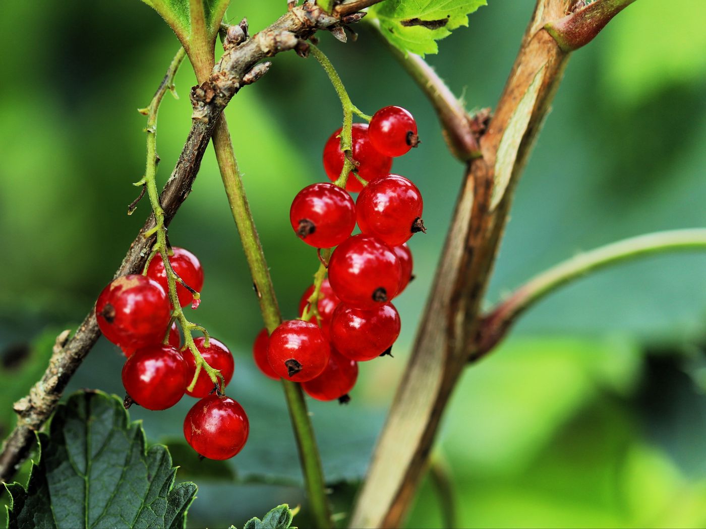 Download 1400x1050 currant, berries, leaves, branches, red, macro wallpaper, background standard 4:3