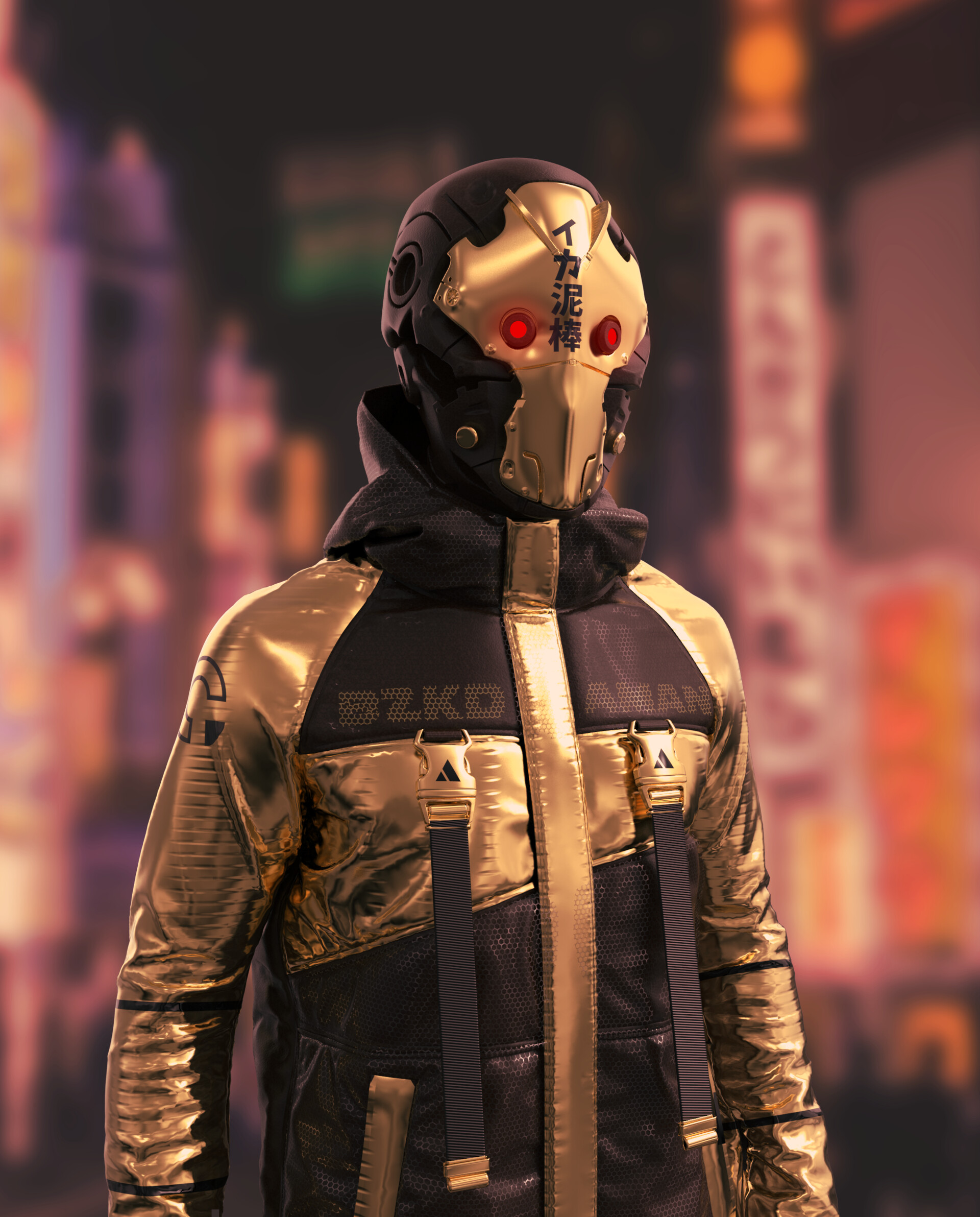 Download 1920x2383 cyborg, robot, costume, inscription wallpaper, background