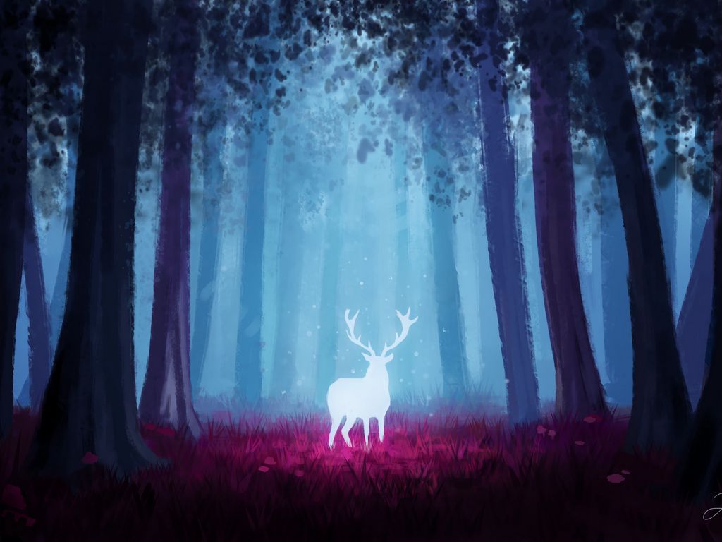 Download 1024x768 deer, forest, art, light, glow wallpaper, background standard 4:3