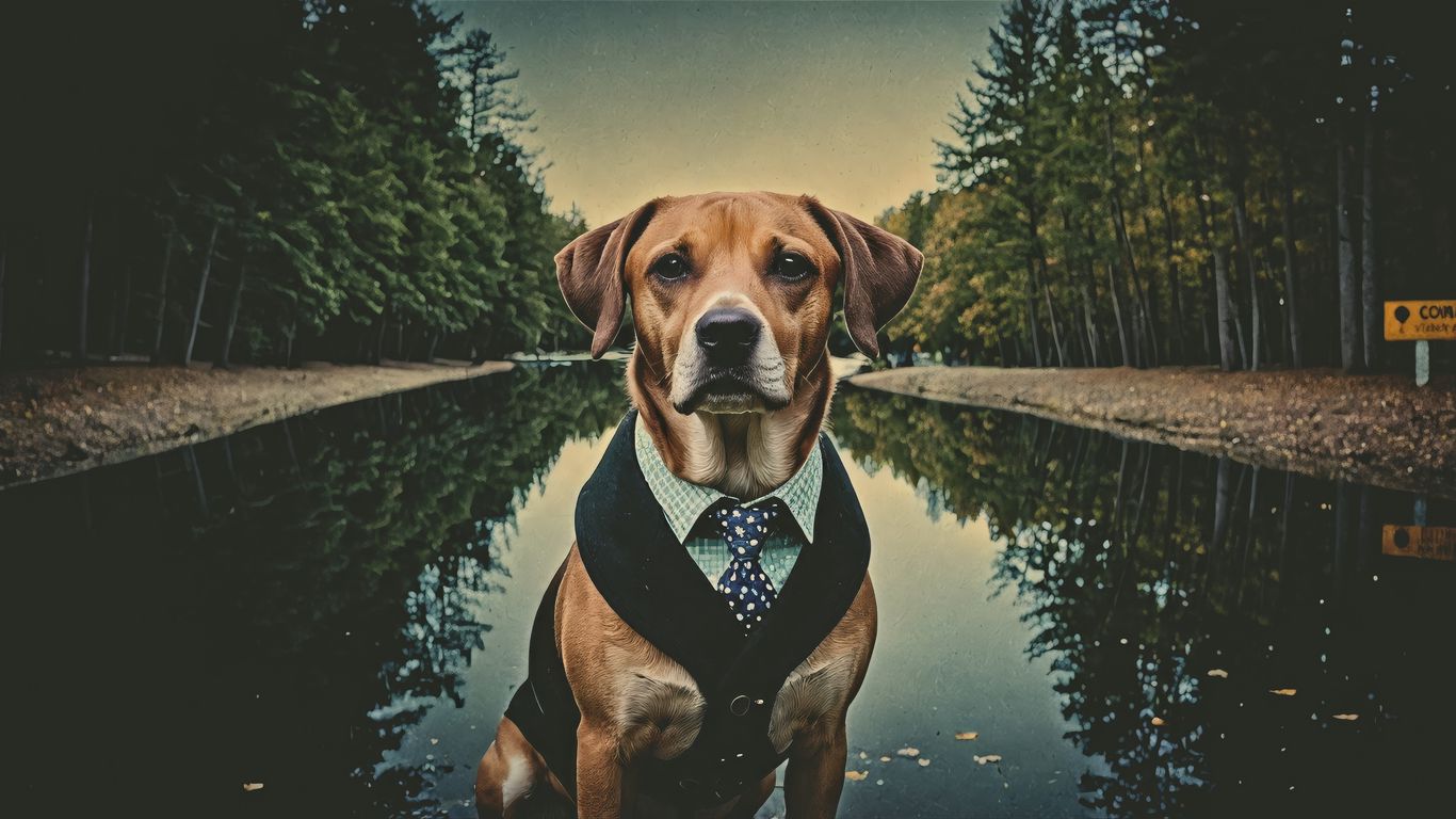 Download 1366x768 dog, pet, tie, pond wallpaper, background tablet, laptop