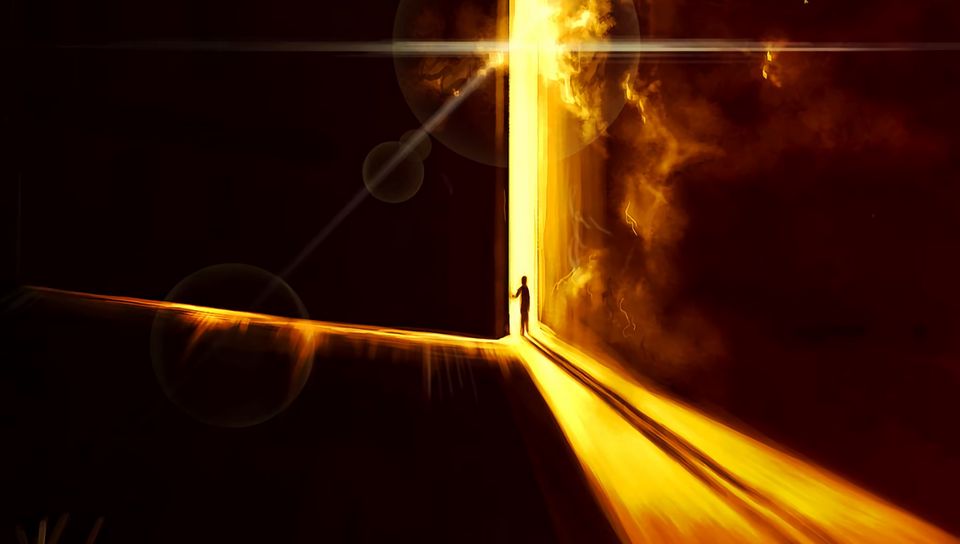 Download 960x544 door, silhouette, shine, light, art wallpaper, background playstation ps vita
