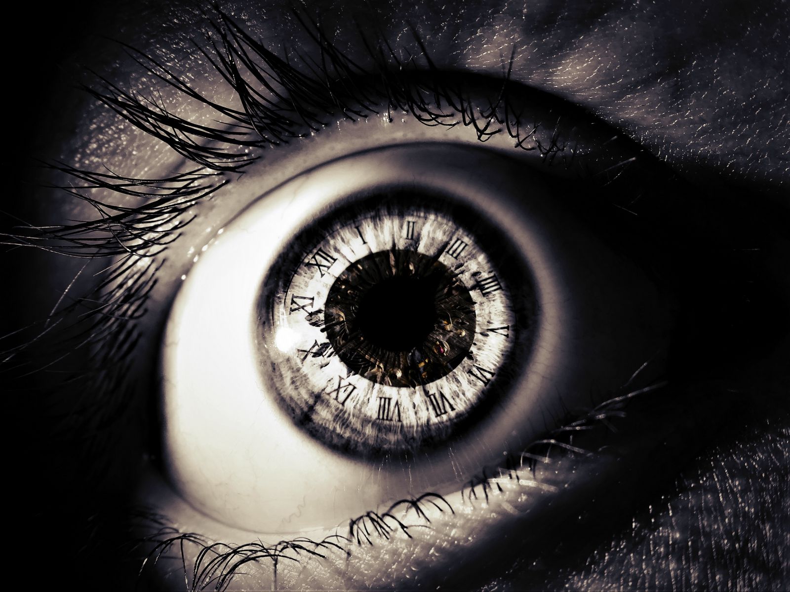 Download 1600x1200 eye, dial, illusion, pupil, time, surrealism wallpaper, background standard 4:3