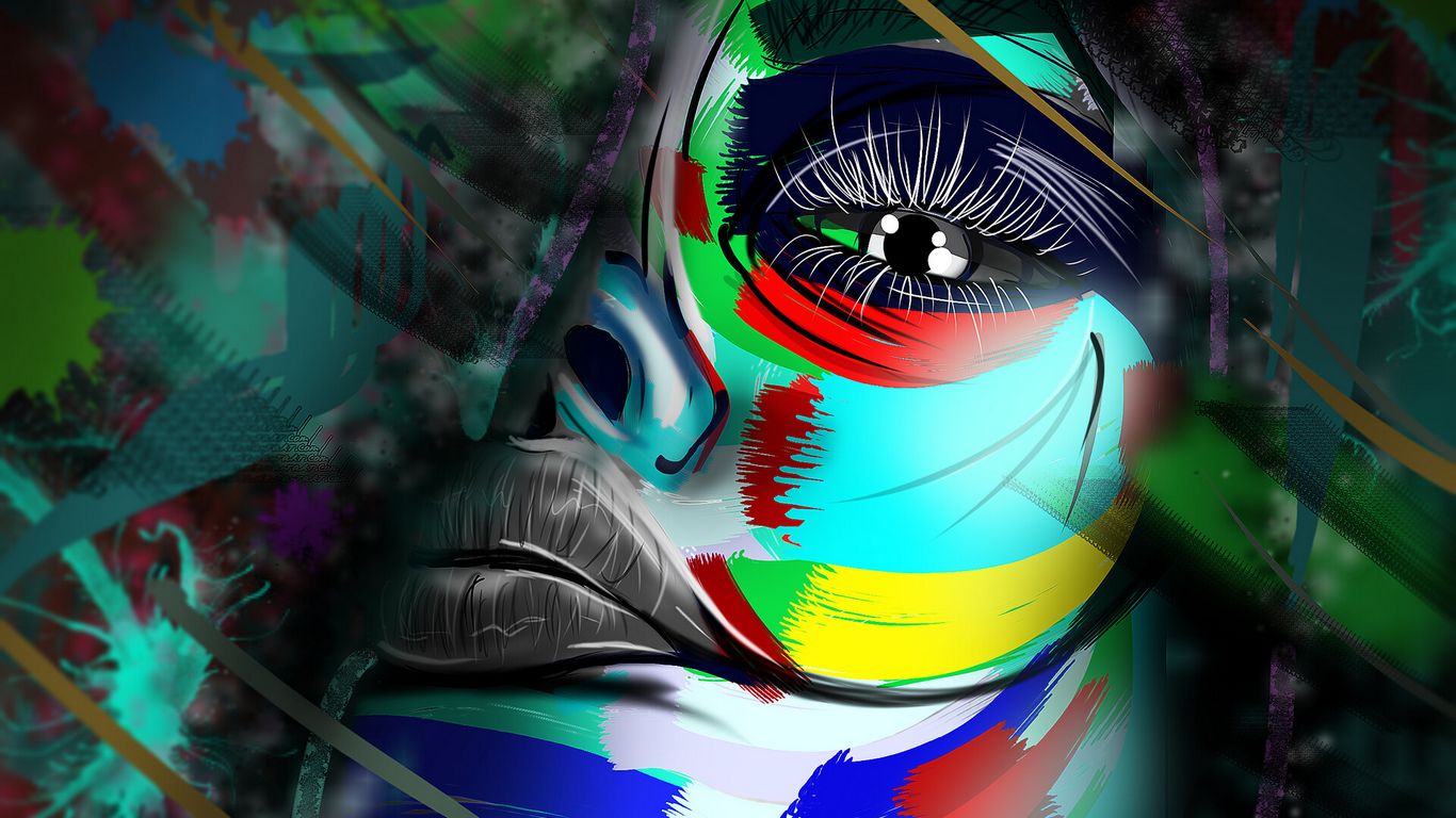 Download 1366x768 face, colorful, art, paint, spots wallpaper, background tablet, laptop