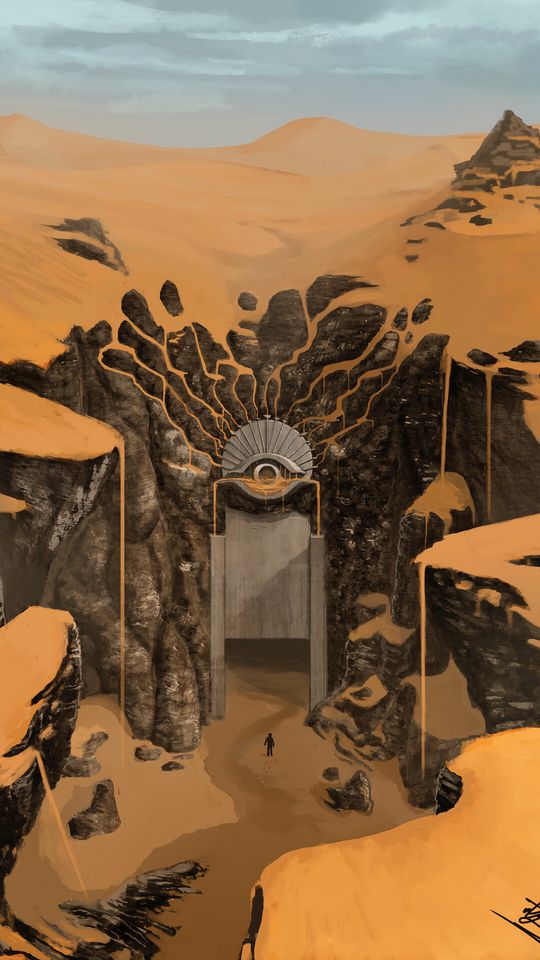 Download 540x960 fantasy, door, traveler, rocks, desert, art wallpaper, background samsung galaxy s4 mini, microsoft lumia 535, philips xenium, lg l90, htc sensation