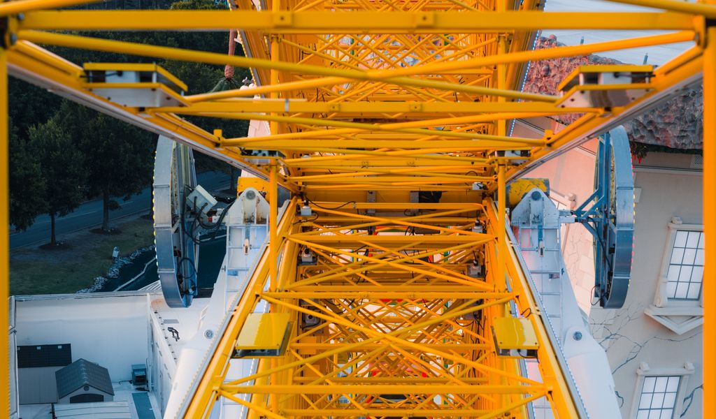 Download 1024x600 ferris wheel, attraction, yellow wallpaper, background netbook, tablet