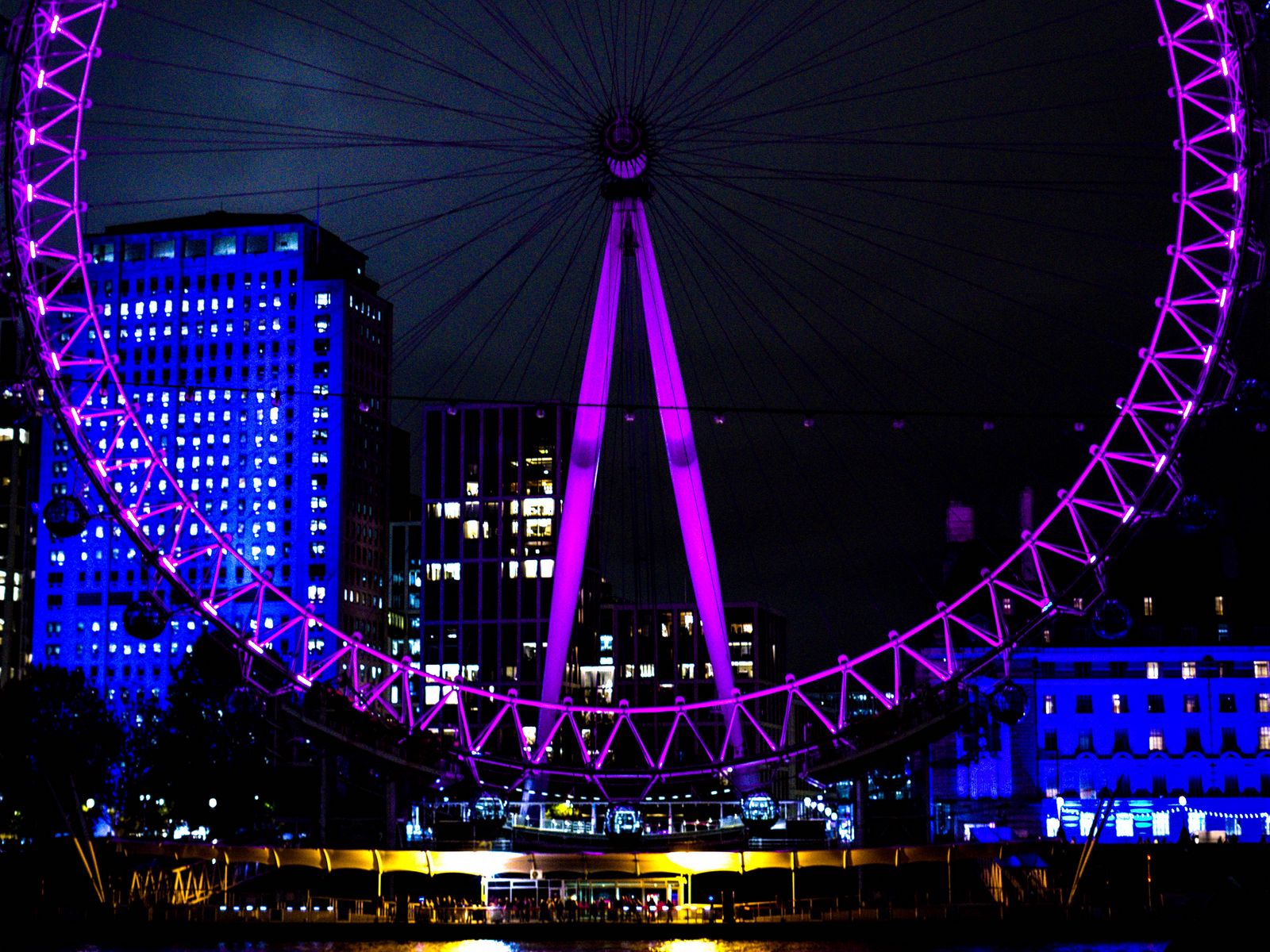 Download 1600x1200 ferris wheel, lights, city, neon, night wallpaper, background standard 4:3
