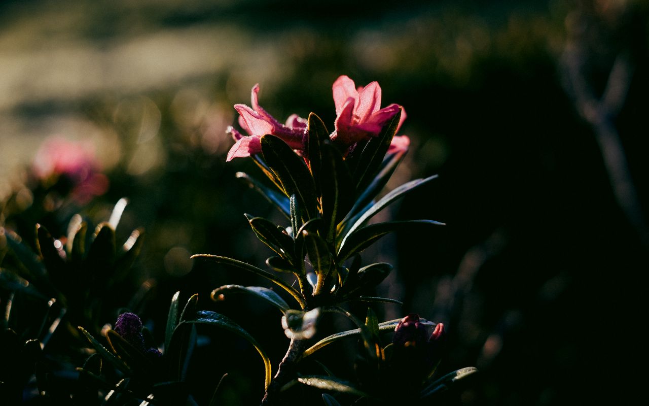 Download 1280x800 flower, dark, leaves, petals wallpaper, background widescreen 16:10