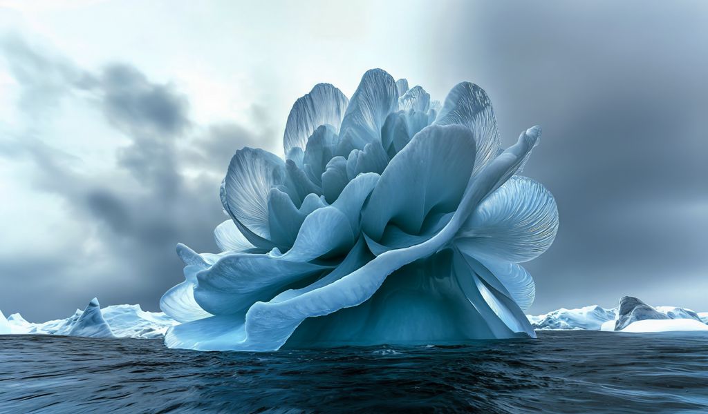 Download 1024x600 flower, iceberg, sea, blue wallpaper, background netbook, tablet
