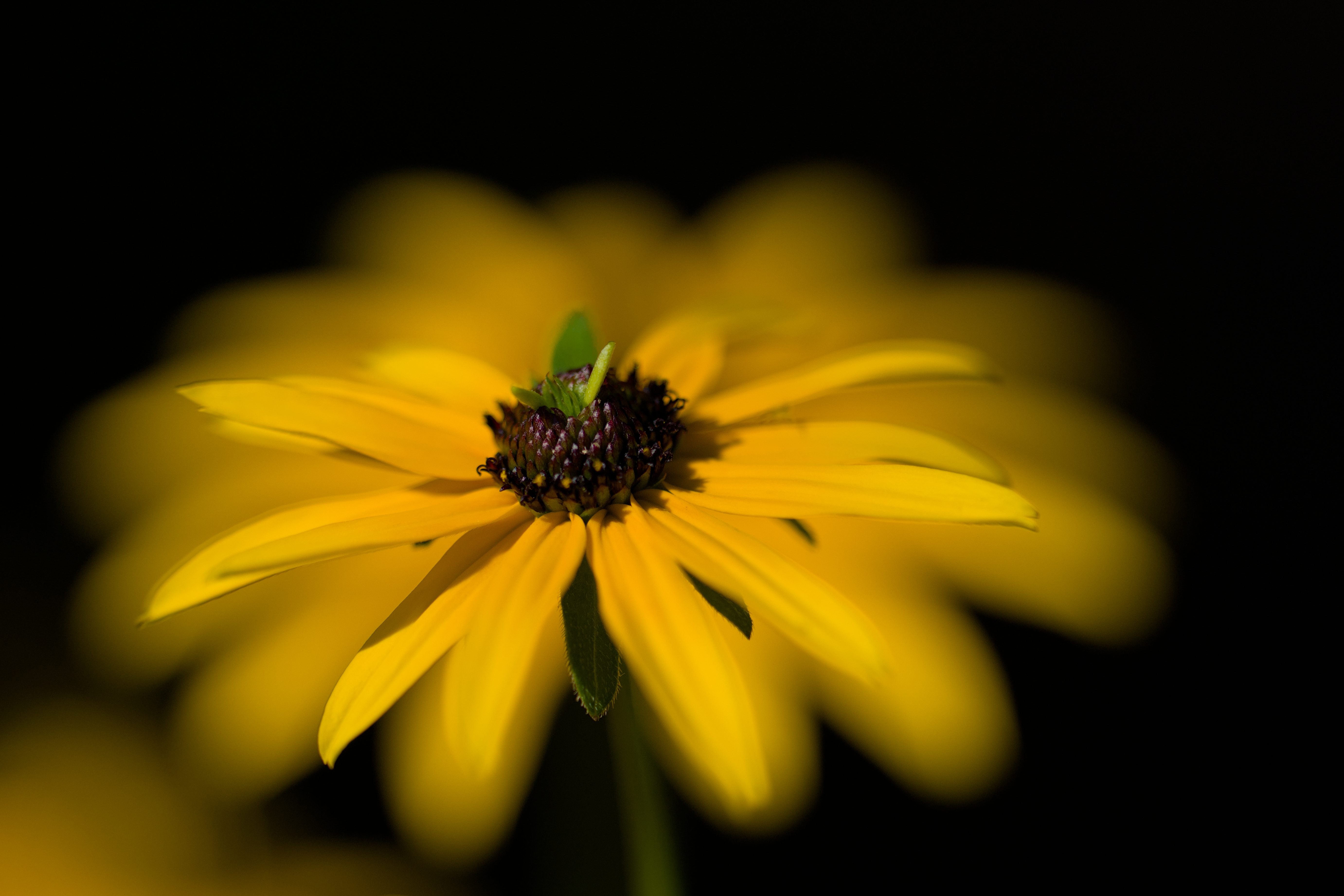 Download 5526x3684 flower, macro, petals, leaves, yellow, blur wallpaper, background