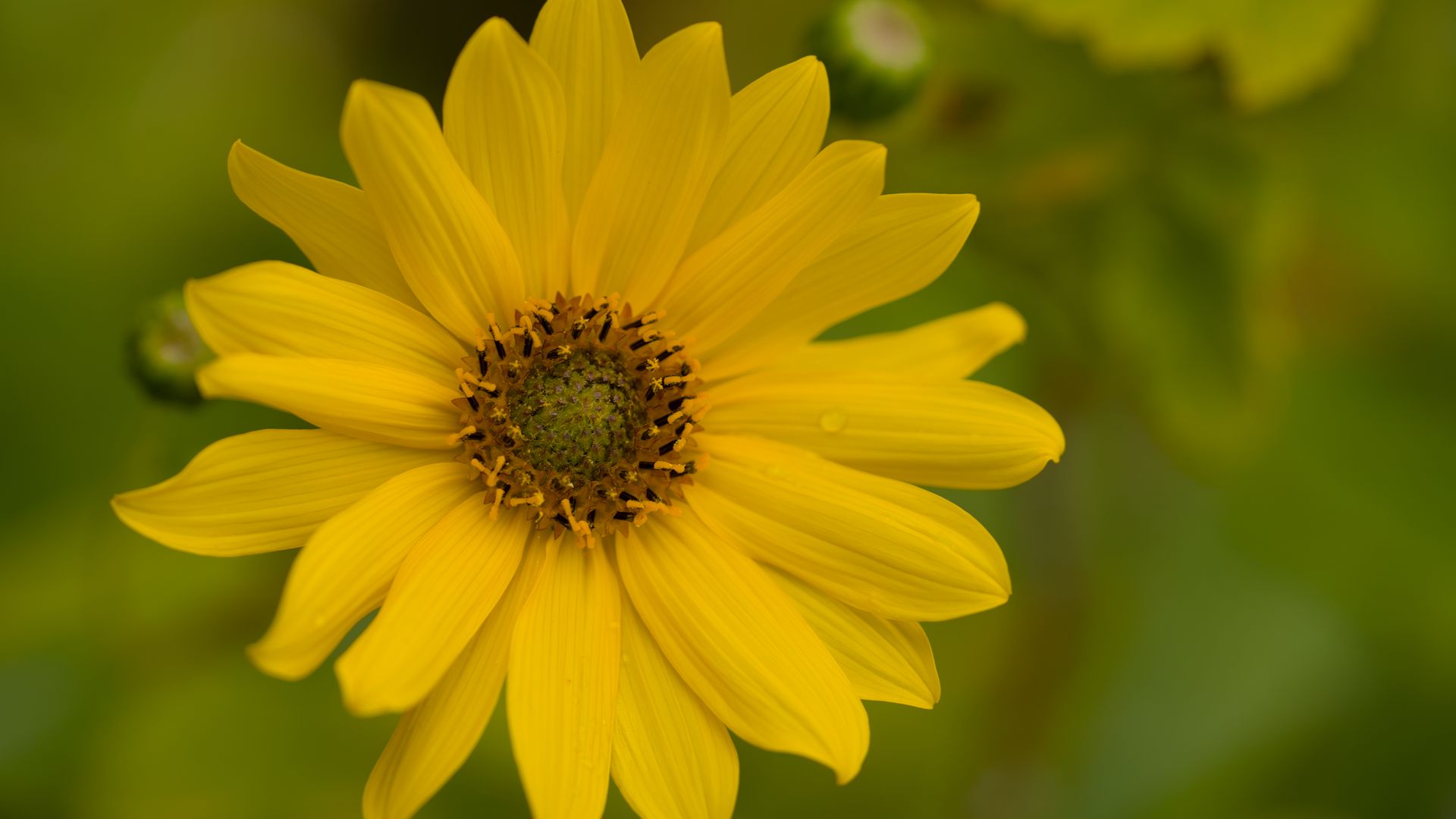Download 1920x1080 flower, petals, drops, macro, yellow, blur wallpaper, background full hd, hdtv, fhd, 1080p
